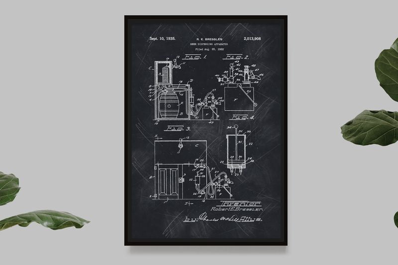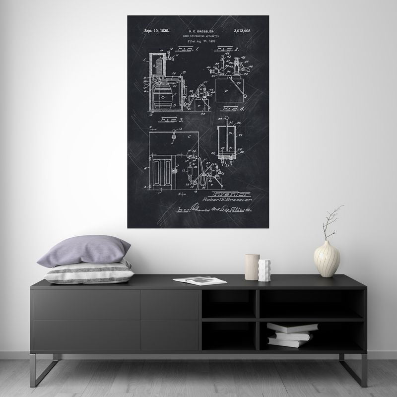 Voici une magnifique illustration en style blueprint qui met en valeur un tonneau de bière en craie blanche sur fond noir. Ce design est parfait pour ajouter une touche de style industriel à votre décoration intérieure.
