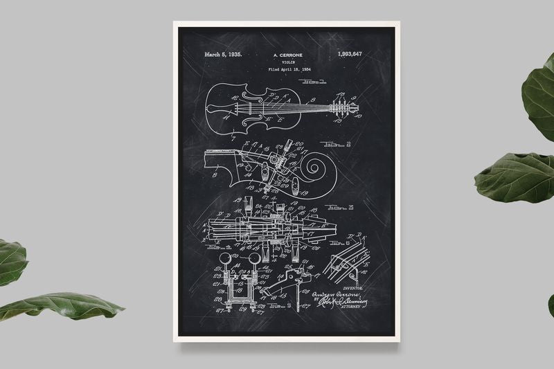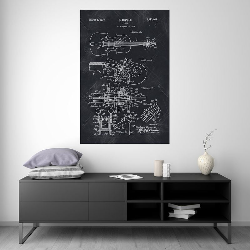 Voici une illustration d'un violon en craie blanche sur fond noir en style blueprint. Cette image est parfaite pour les amateurs de musique classique et pour tous ceux qui apprécient l'esthétique minimaliste et épurée. Le violon est dessiné de manière très détaillée, avec chaque corde et chaque bouton de la tête de l'instrument visible. Le fond noir donne une profondeur et une dramatisme supplémentaire à l'image, tandis que le style blueprint rappelle les plans de construction et apporte une touche industrielle à l'ensemble. Cette illustration serait parfaite pour décorer le mur d'un salon ou d'un studio de musique. N'hésitez pas à l'ajouter à votre collection d'art !