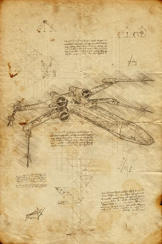 Voici une illustration du célèbre X-wing de Star Wars, digne de la grandeur de Léonard de Vinci lui-même. Avec ses lignes épurées et son design élégant, ce vaisseau est une merveille de technologie et de style. Regardez la finesse de chaque détail, chaque ligne et chaque courbe, tous conçus pour offrir une performance maximale dans les combats spatiaux.