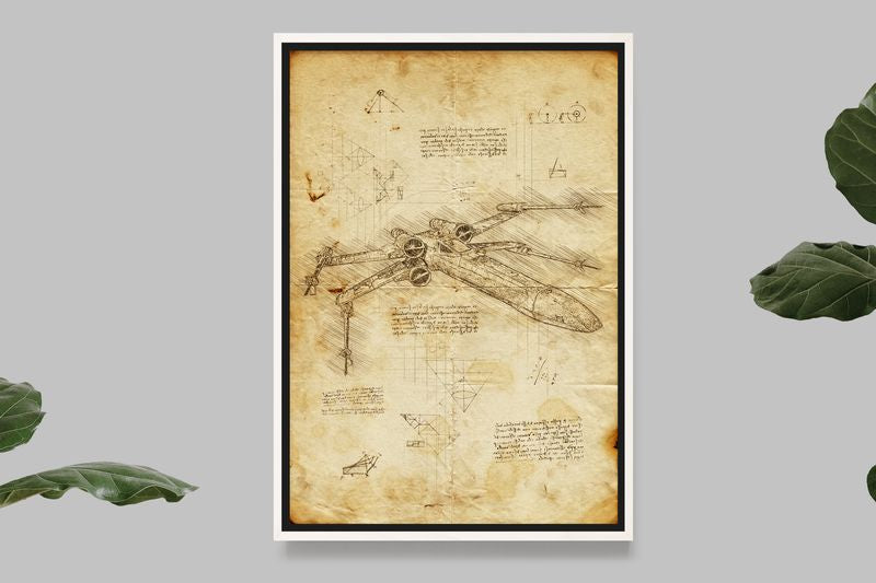 Cette illustration captivante vous transporte dans l'univers de Star Wars et vous fait rêver de voler à bord de cet incroyable vaisseau. Elle est idéale pour décorer votre salon, votre chambre ou votre bureau, et elle sera le clou de toute collection de fan de Star Wars. Ne manquez pas l'occasion de mettre cet X-wing de Léonard de Vinci en valeur sur vos murs et de vous immerger dans l'univers de la science-fiction.